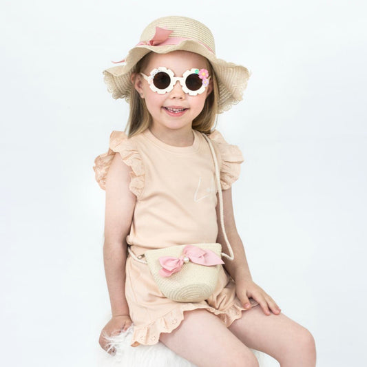 Pearl Bow Straw Hat & Bag Set