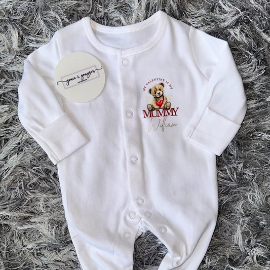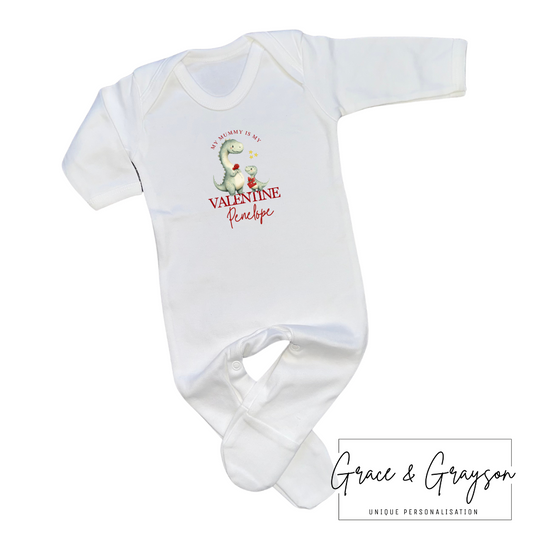 Personalised Mummy Is My Valentine Dinosaur Baby Grow