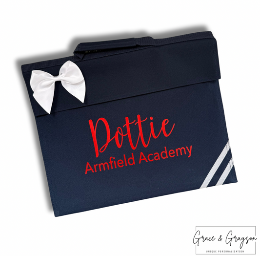 Kids Personalised Name, School & Year Bow Book Bag
