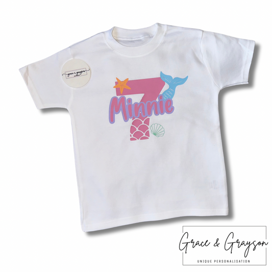 Personalised Mermaid Birthday Number T-Shirt