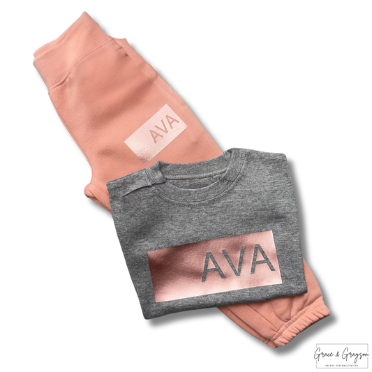 Personalised Dusty Pink Name Bar T-Shirt & Joggers