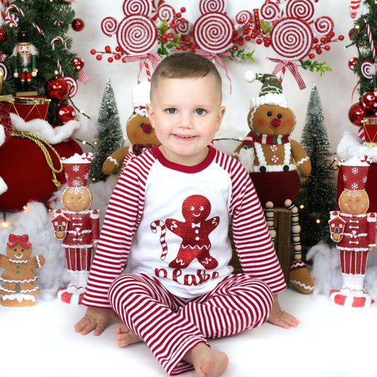 Family Matching Candy Cane Gingerbread man Red Stripe Christmas Pyjamas