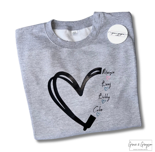 Adults Personalised Family Heart Sweatshirt
