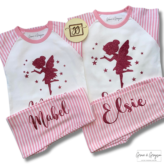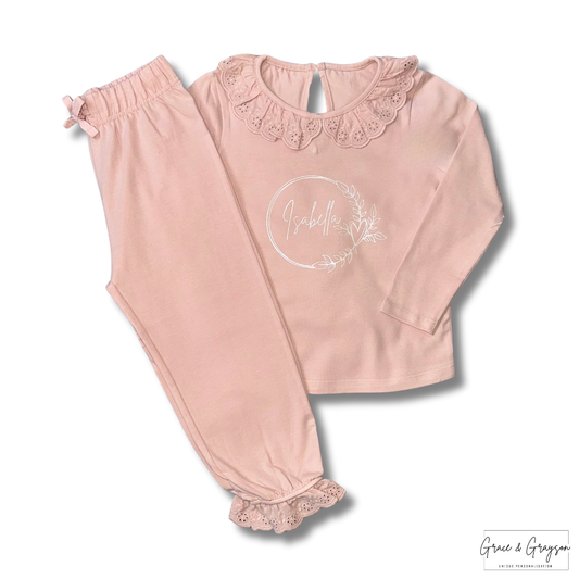 Personalised Red Sugar Plum Christmas Frill Pyjamas