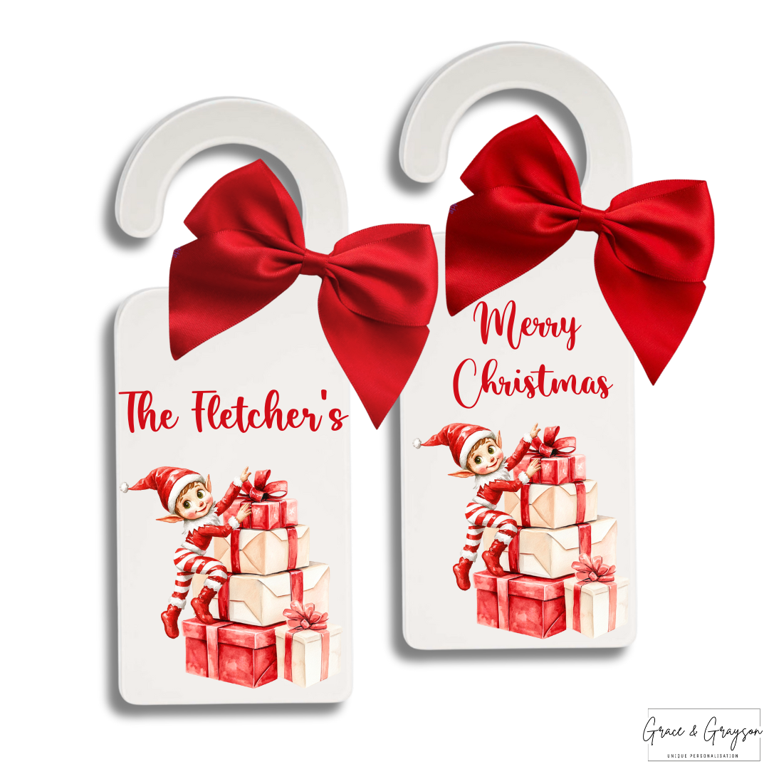 Add a festive charm to your home with our Christmas elf door hangers, adorned with an optional premium Italian satin bow available in your chosen colour. Make it truly yours by personalising it with a name or family name.
