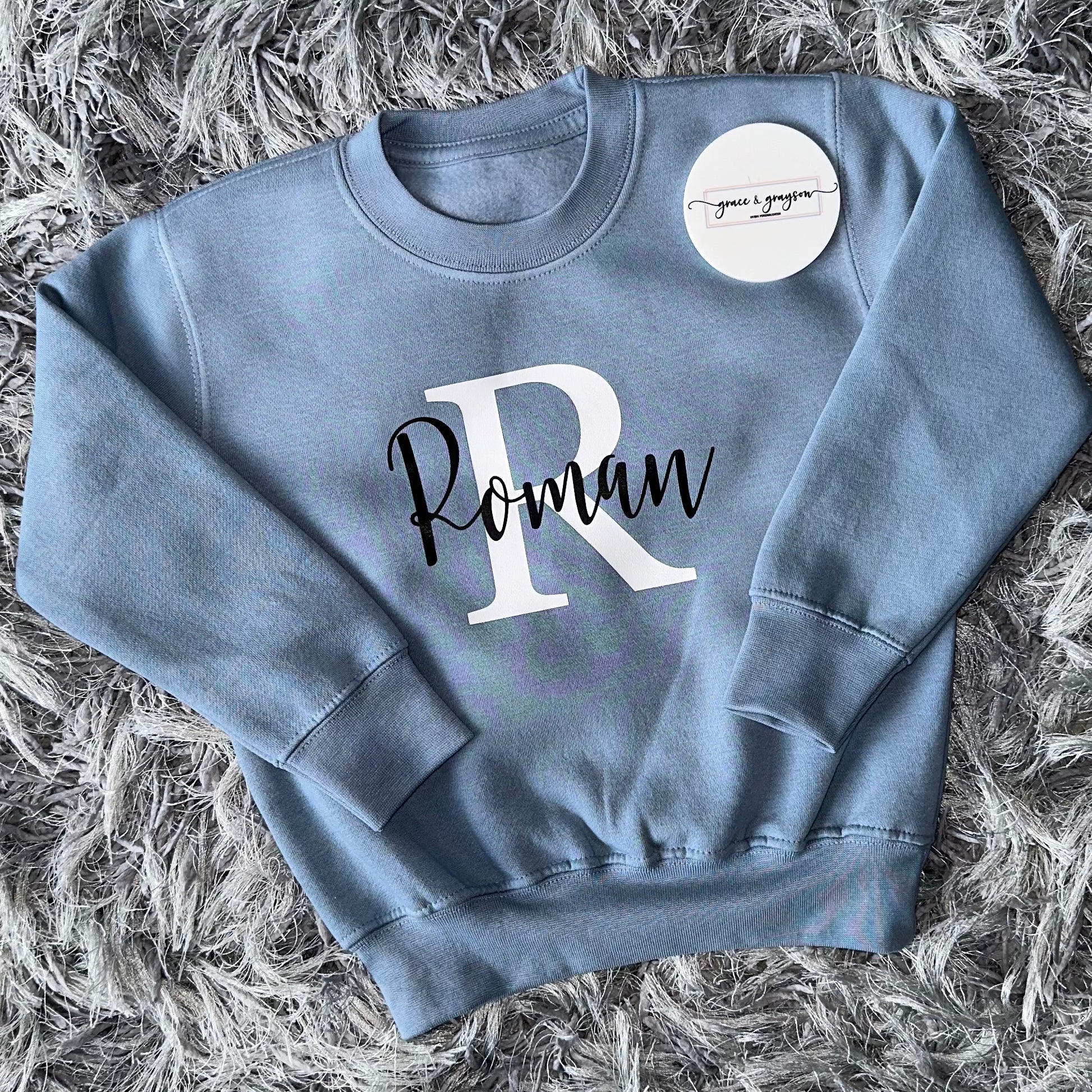 Personalised Dusty Blue Name & Initial Sweatshirt