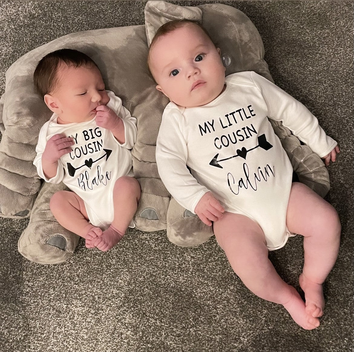 Matching big and little vests, a cute little way to introduce the new addition to the family weather its Cousins, Brothers or Sisters, A memory that can be treasured forever.