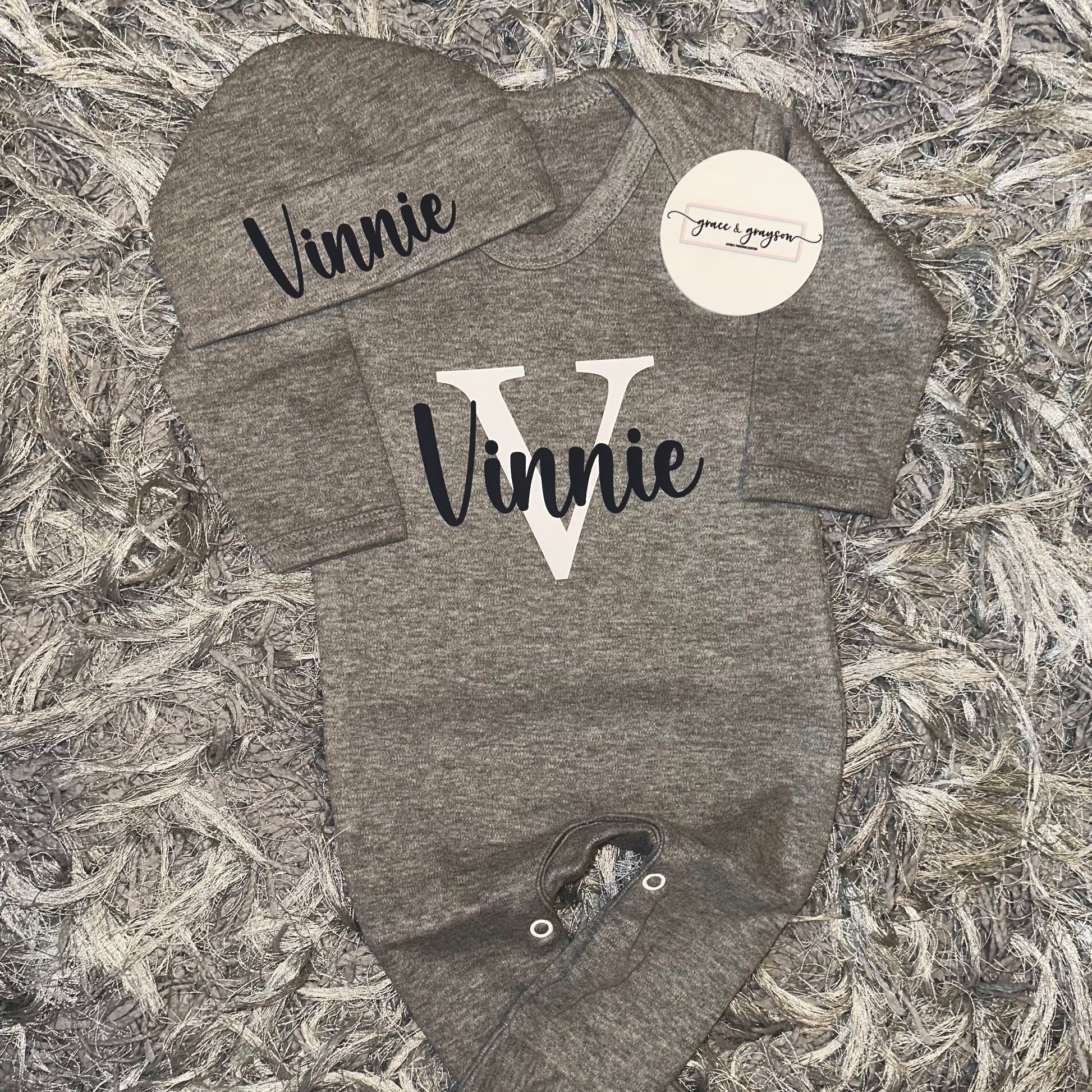 Our Name & Initial Baby Grow Set is a top-seller. With the choice to customise the look with a variety of fonts and font colours, making it a truly personalised and unique gift.